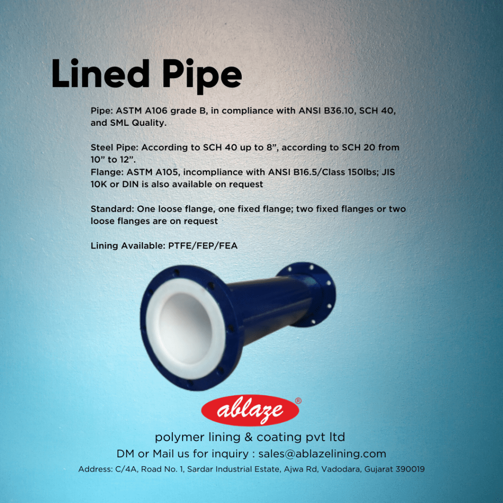 manufacturing of fluoropolymer lined Pipes, fittings, valves and customized products. The products are specially designed for use in highly corrosive applications and comply to International Standards such as ASTM F 1545
